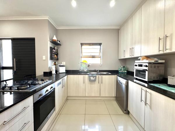 Discover this modern and inviting 3-bedroom, 2-bathroom residence nestled in the suburban heart of Pinelands, Port Elizabeth. Boasting a contemporary aesthetic, the property features a clean exterior, a spacious paved driveway, and a double garage, ensuring excellent kerb appeal and practical parking solutions. The generous 153 sqm floor plan is designed for comfortable living, offering an open-plan layout that seamlessly connects the living spaces. Large windows and sliding doors invite abundant natural light, creating a bright and airy atmosphere.