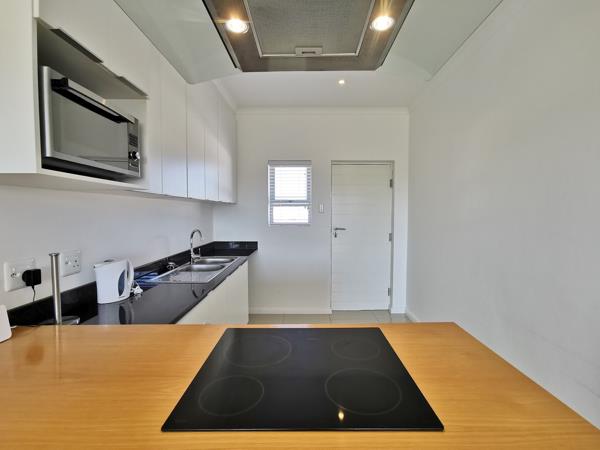Flowing seamlessly into the open-plan living area, the space extends onto a private balcony with stunning views over the vlei, perfect for morning coffee or evening relaxation. Two parking bays are allocated for convenience and peace of mind.