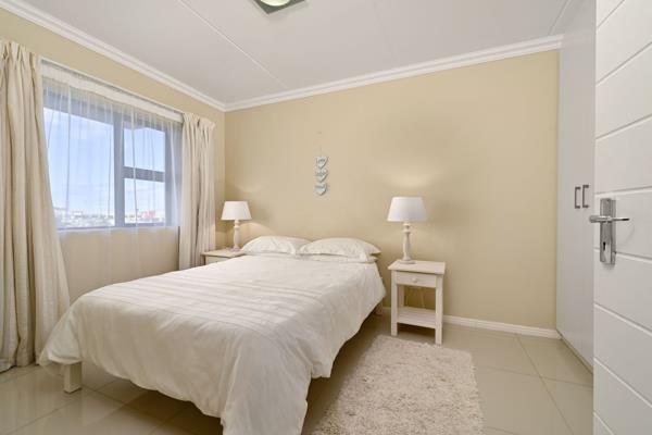 Both bedrooms equipped with built-in-cupboards a desk and is fully tiled. One family sized bathroom including a bath basin shower and loo. One shaded allocated parking bay included.