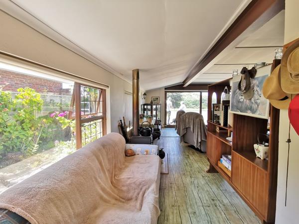 The property is set on a large erf, with the house positioned near the river, leaving ample driveway space for parking. The beautifully maintained garden boasts fruit trees, flowering plants and mature greenery on either side of the house. An additional open area alongside the home offers potential pedestrian access to the water''s edge.