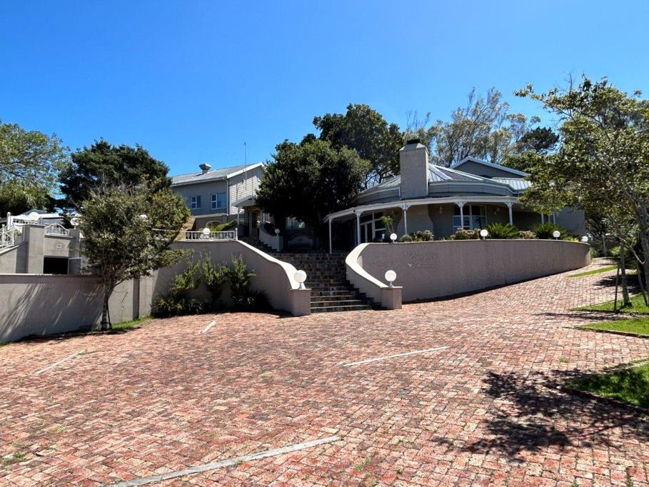 It has an amazing main house with 5 bedrooms, 5 bathrooms, all with their own en-suites, with high end finishes and under floor heating, and air conditioning in certain bedrooms. Downstairs we have 2 beautiful bedrooms with their own en-suite bathrooms, 2 lounge areas, a two dining room areas going onto its own large deck with sea views. A large fully fitted Industrial kitchen with coffee machine, gas stoves, extractor, prep area etc, laundry , walk in fridge, and staff quarters. As we move upstairs with a gorgeous staircase we have 3 spacious bedrooms all with stacker door windows, all with full amazing en-suite bathrooms with shutter blinds, overlooking a round infinity pool and gorge and mountain views in the distance. The house is fitted with aluminium windows , aluminium sliding doors, and aluminium shutter sliding doors through out. As we go down from the pool we also have an undercover braai area with its own fridge and supply area. We also have the wedding, and conference areas on the other side of the courtyard, with a reception, and separate computer terminal room, with multi desks. The premises are all fully fenced with electrical fencing for all the game on the premises, with your own private gate entrance onto the joining reserve on your border. We have a generator that supplies power to the entire facility if needed. We also have 2 boreholes, and solar lighting along the various roads. We also have a quaint chapel in the forest area.