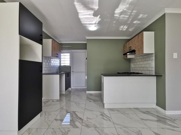 The heart of the home is the open-plan kitchen, complete with sleek granite countertops, perfect for both meal preparation and casual dining. The kitchen flows seamlessly into the lounge area, creating a comfortable space for relaxing and entertaining. Tiled throughout and fitted with built-in cupboards in all bedrooms, this home is designed for both style and practicality.