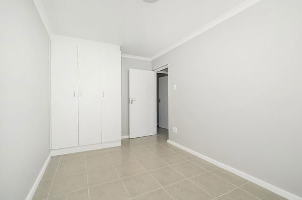 The sunny, open-plan living areas incorporate the lounge, dining room and kitchen to allow for sociable meal preparation. Both bedrooms have built-in cupboards, and there are low maintenance floor tiles throughout. For peace of mind, the complex is fully walled with remote controlled access. Additional features are low levies, and lush green communal lawns.
