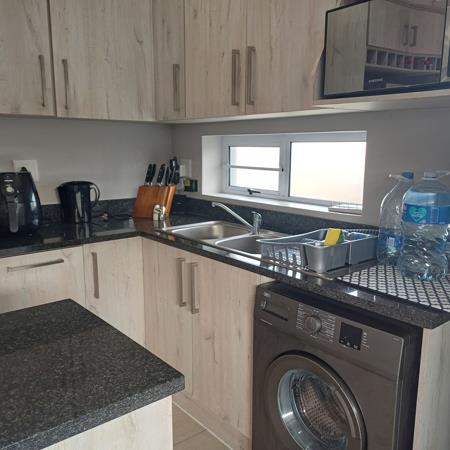 This home offers an open living area with exposed beams and a modern open plan kitchen with granite tops. Off the living area is an undercover built in braai.
