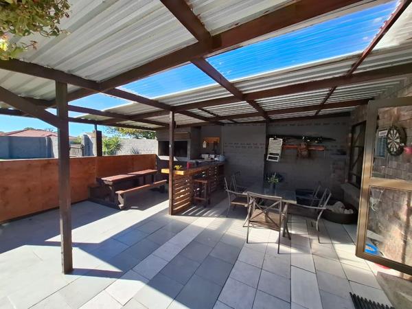 The undercover braai and entertainment area is ideal for the party lover/entertainer. You will also find 2 fairly sized wendy houses, a double carport and a water tank on this property. Lots of potential to expand. Building plans to extend the dwelling is available but not approved as yes.