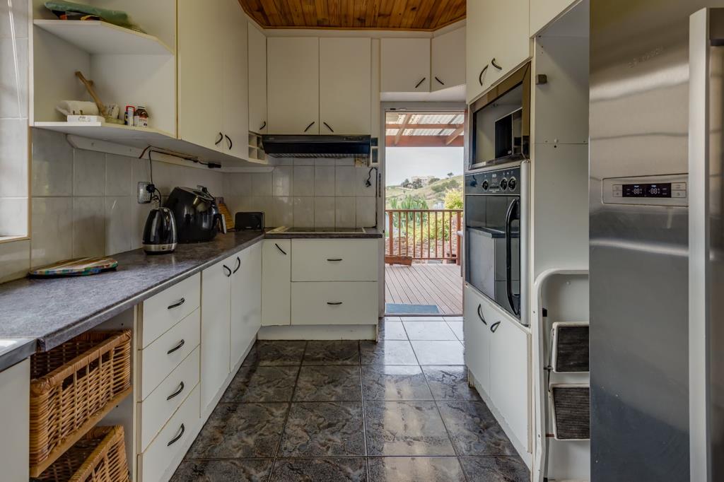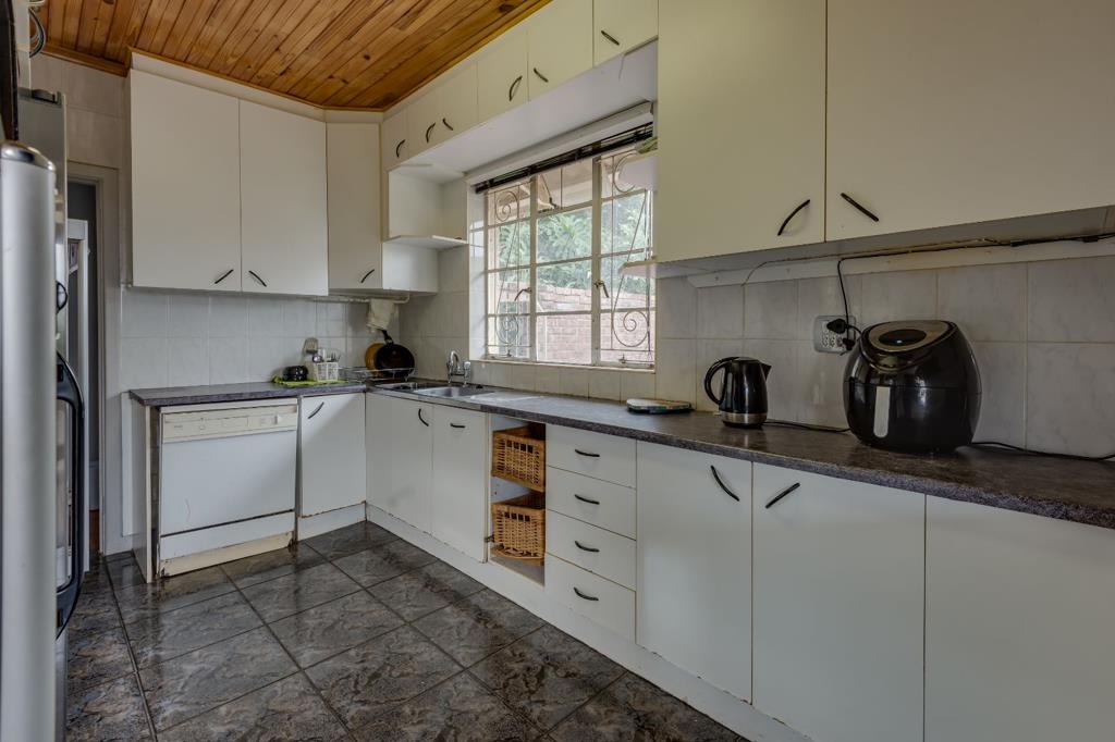 The kitchen is well-equipped with ample cupboard space and opens onto a covered back deck. Steps lead down to a private garden complete with a built-in braai ideal for entertaining.