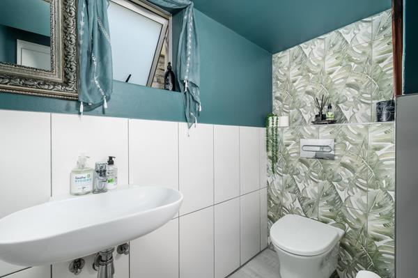 The living areas, with accent walls and vinyl flooring, offer a cozy yet stylish setting for family enjoyment. Upstairs, two sunny bedrooms provide beautiful sea views and overlook the lush complex gardens. The main bedroom opens to a private balcony, perfect for morning coffee or evening relaxation. The third bedroom, currently used as a study, can easily be converted to suit your needs. The family bathroom is truly impressive, offering both space and luxury.