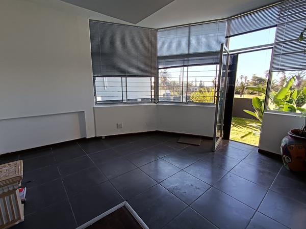 The kitchen is neat and functional, with tiled floors, ample cupboard space, quality countertops, an electric stove and extractor fan. The sunny lounge is spacious and inviting, complemented by large windows and warm wooden flooring, while the separate dining room is perfect for entertaining.