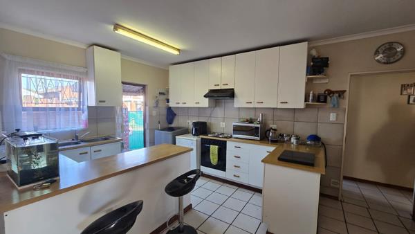 The kitchen opens out to a private back courtyard with a washing line, adding a practical touch to your home.
