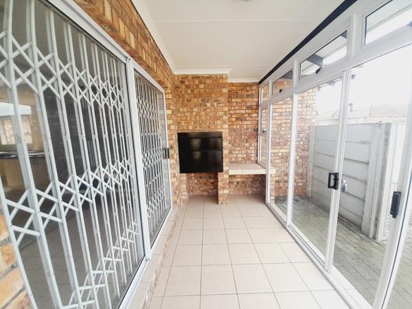 Inside, youll find a spacious open-plan kitchen and living area, complete with tiled floors, laminated bedroom flooring, and fitted blinds in the living and bedrooms. The enclosed braai area is perfect for entertaining, while the full lock-up garage with a rubber mat floor provides both convenience and practicality.