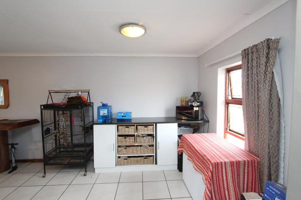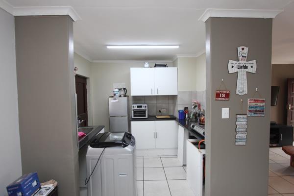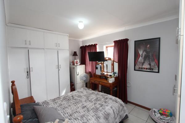 Well-presented 2-bedroom townhouse tiled throughout for easy maintenance. Both bedrooms fit double beds and include built-in cupboards. The kitchen has a washing-machine point and built-in cupboard, while the dining room offers extra storage and space for diningroom table. Bathroom features a shower, basin and toilet. Enjoy a private enclosed garden with an outside braai and parking for two vehicles. Perfect for first-time buyers, small families.