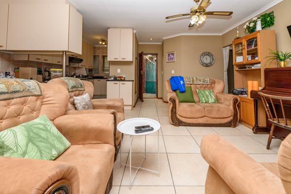 Step inside this delightful townhouse where an inviting open-plan living area flows beautifully into the kitchen, creating a warm and welcoming space for everyday living. The home features three comfortable bedrooms, each fitted with built-in cupboards, and one neat bathroom with a bath, basin, toilet, and hand shower for convenience.
