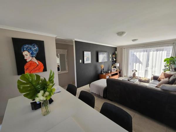 This neat modern home offers 3 spacious bedrooms with built-in cupboards, 2 bathrooms (1 mes), lounge, dining room and modern fitted open-plan kitchen, sliding doors from lounge onto patio area with fireplace, lock-up garage all in sought after secure complex with security access.