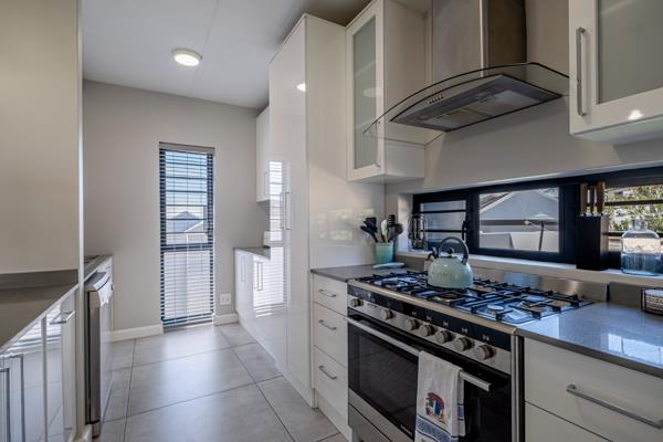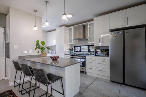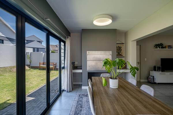The open-plan lounge, dining room, and indoor braai area flow beautifully together, creating an easy, welcoming space ideal for both everyday living and weekend entertaining. Sliding doors lead to the patio and enclosed garden, offering a peaceful setting for children, pets, or quiet outdoor moments.