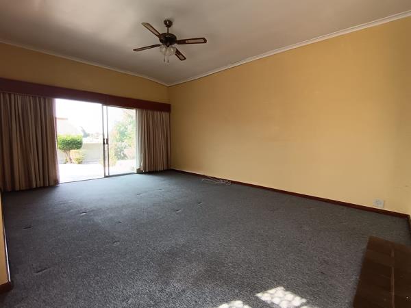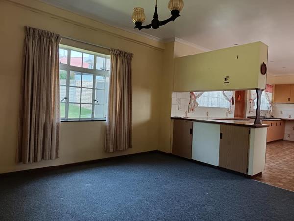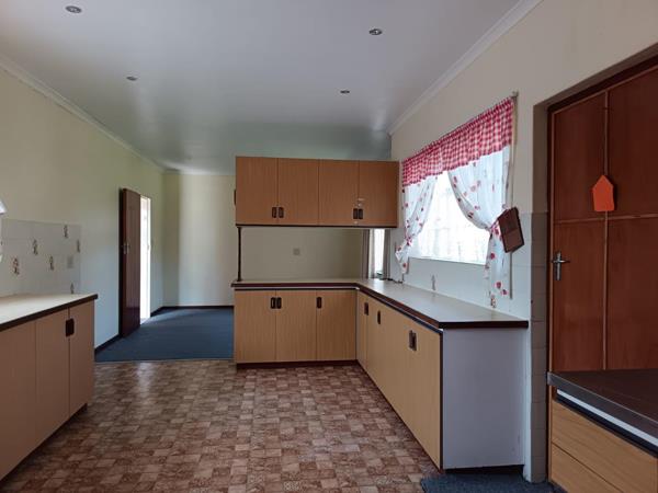 Dining room flowing to an exceptionally spacious kitchen with loads of cupboard space, access to the back garden.