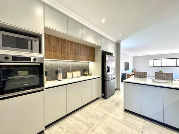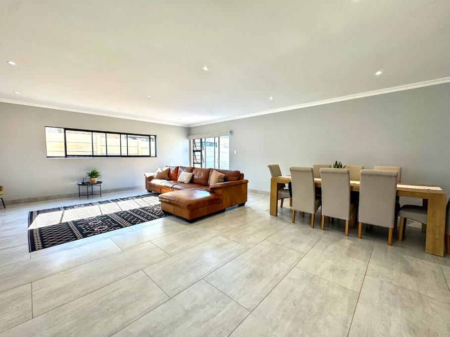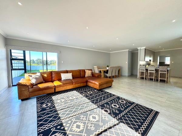 Expansive open living area with ample light and sliding doors flowing to the outside pool area with built outside braai.