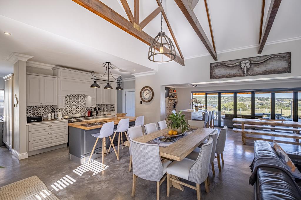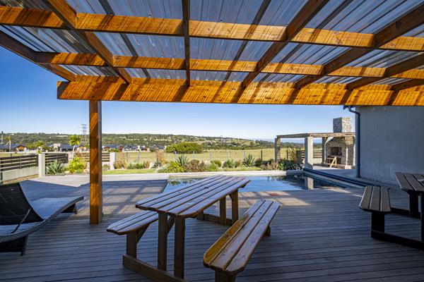 The living areas expand to an indoor entertainment area with braai and built in bar area. The stacker doors open up welcoming the outdoors! There is a large deck and pool, spend your Summer here! The garden is enclosed and large and has an additional braai area at the bottom, feel like you are eating with the animals as you sip your sundowner!