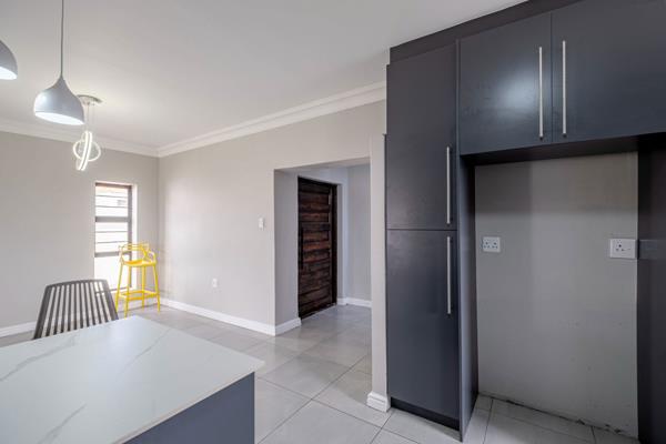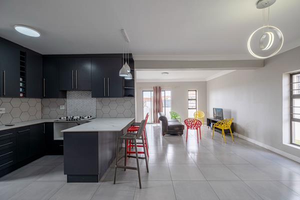 Beautiful, Brand New Double-Storey in Freehold Complex . Let the memories begin in this stunning, newly-built 220sqm home! Sunny, bright and with breath-taking views over Kamma Park, it offers two levels of luxurious living. Step inside and youll be met with an elegant open-plan living area that flows seamlessly through sliding doors to an indoor braai and out into the very private, walled garden. Within its sociable footprint are a granite-topped kitchen with a new gas hob and electric oven, breakfast counter and separate scullery laundry. Alongside are the dining room and lounge, all connected by trendy large format ceramic floor tiles and illuminated by statement light fittings. The fourth bedroom which can be used as a TV lounge and a guest cloakroom are also on the lower level and is currently being used as an Air B&B. A work of art in its own right, the stainless steel and wood staircase takes you upstairs to three bedrooms and two spa-like bathrooms. The main bedroom opens on to a covered balcony with panoramic views over the suburb the ultimate spot to enjoy with your morning coffee or tea, or preferred sundowner. In addition to a single garage on remote, theres a double carport and a paved driveway for parking. With levies of only R550.00 per month, electric fencing and automated access for peace of mind .Property still needs some finishning touches, like main bedroom b.i.c''s, some outside steps to be tiled etc. You finish yourself and reap the profits. Call agent for more information.