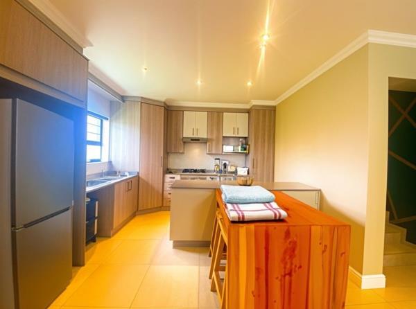 The kitchen offers ample counter space and cabinetry, flowing seamlessly into the lounge and dining space.