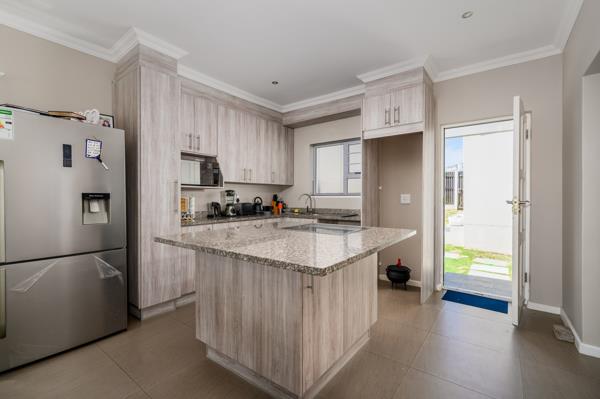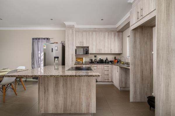 This three bedroom home offers an airy lounge area, which overlooks the sunny rear garden, where your outdoor built-in braai patio is located. The living area is the core of the home, forming part of the modern equipped kitchen and lounge area set to one side. The bedrooms and bathrooms lead of the center of the home ensuring every family member is part of this open plan lifestyle. Floor to ceiling cupboards are installed in the bedrooms and the main bedroom enjoys a full en-suite bathroom. The double garage is remote activated and additional parking is available.