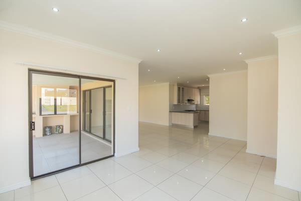 This elegant home offers spacious open-plan living areas that flow seamlessly to a covered entertainment patio with built-in braai ideal for relaxed family living or entertaining guests.