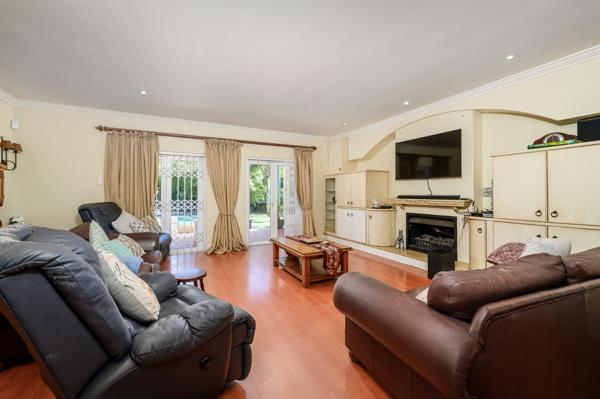 Comfort is enhanced by air conditioning, a cosy fireplace, and modern touches like special doors, special lights, and sliding doors that contribute to an open-plan feel. The property extends its appeal outdoors with a generous 4489 sqm erf, featuring a sparkling swimming pool, over looked by a welcoming patio for alfresco dining, and a balcony for enjoying the South African climate. Entertain guests with ease using the built-in braai andamp gas grill or enjoy the lush established garden.