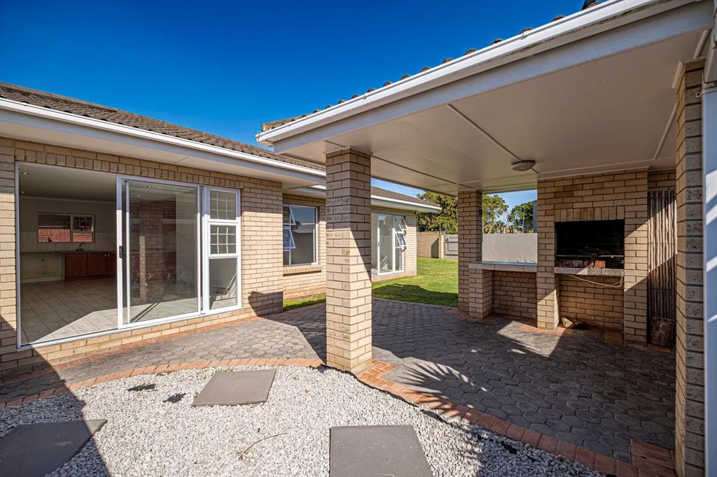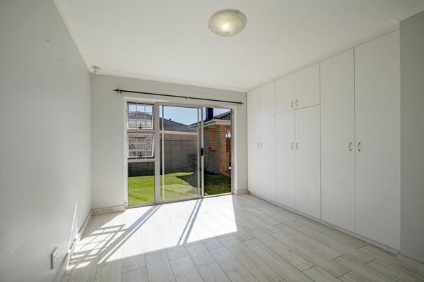 All three bedrooms are fitted with built in cupboards, providing ample storage for the whole family. The open plan kitchen is a dream, featuring loads of cupboard space, a gas hob, undercounter oven, and a layout that flows easily into the lounge. From here, a sliding door leads you to a covered braai area, perfect for relaxed weekend entertaining or evening family Braais.