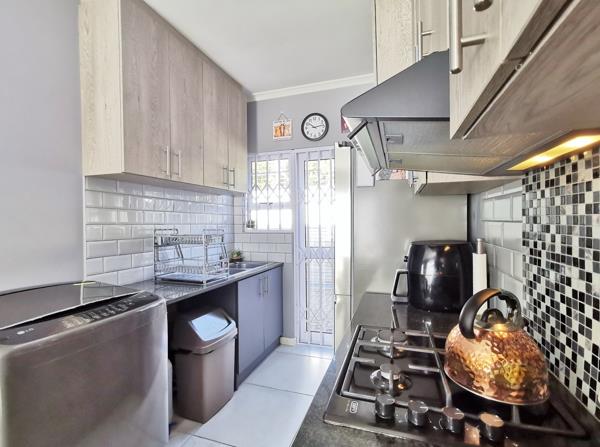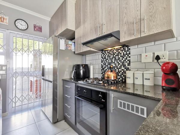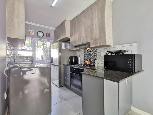 Security is a priority, with security gates and burglar bars installed throughout the unit. The single garage inter-leads to the front enclosed garden, offering additional security and convenience.