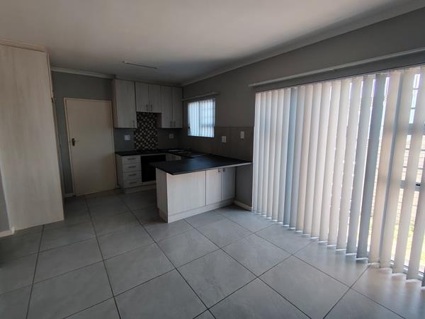 Immaculate 65sqm townhouse situated in modern well-maintained with low maintenance secure complex. Remote access. 2 Bedrooms. Main Bedroom with sliding door leads to enclosed garden. Ample built-in cupboards. Bathroom with shower only. Open plan kitchen with undercounter oven and hob to lounge. Single Garage on remote interleads to unit. Washing machine connection in garage.