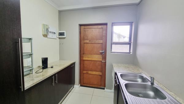 The kitchen is well-fitted, with plenty of cabinets and gleaming granite countertops. There is also a scullery with laundry connections and lots of extra storage. Plus, this level has a bedroom with en-suite bathroom, which can also be utilized as an office or study.