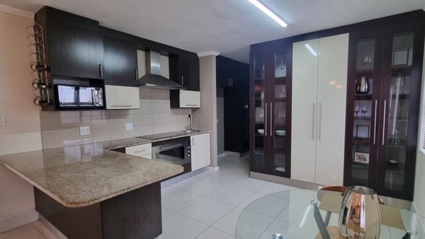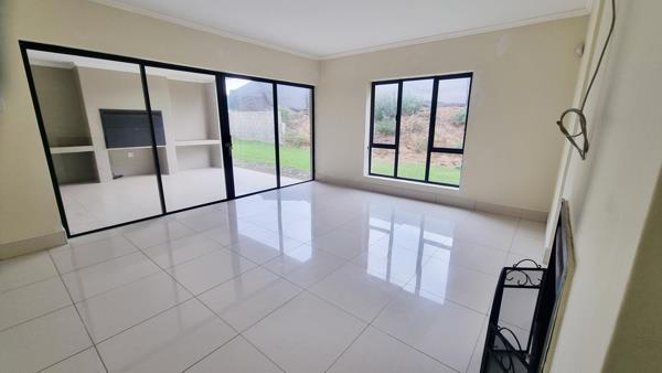 The ground level comprises of spacious, tiled living rooms including an elegant lounge with fireplace, dining room / family room which leads seamlessly into the fabulous open plan kitchen. The hallway and living room, open out onto a sheltered entertainment patio with built-in braai.