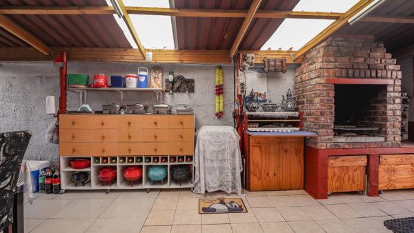 The heart of the home is the well-designed kitchen with a built-in stove, flowing effortlessly into the entertainment area. Here, an undercover braai sets the scene for relaxed weekends and family gatherings.