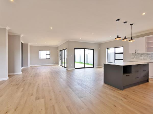 This beautifully designed home will offer three generously sized bedrooms, including a main en-suite, providing comfort and privacy for the entire family. A conveniently located guest toilet in the passage adds to the practicality of the layout. The modern open-plan kitchen, complete with a scullery, flows effortlessly into the spacious living and dining areas. This inviting space extends to an enclosed braai room with sliding doors that open to a private garden, ideal for entertaining guests or enjoying quiet moments outdoors.
