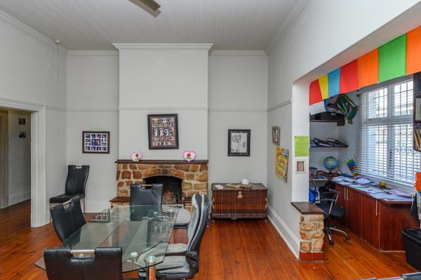 This gracious corner property in Mount Croix is bursting with charm from a bygone era with its wrap-around enclosed stoep to its high ceilings, wide hallway, wooden floors and working fireplace.