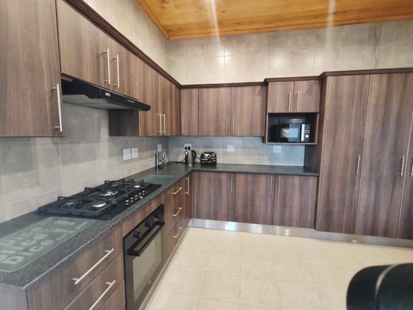 The main house boasts four generously sized bedrooms, including a luxurious master suite complete with underfloor heating, abundant cupboard space, and an open-plan layout spacious enough to include a pajama lounge. There is a built-in padded headboard with overhead cupboards and dresser, loads of BICs and CCTV set up. The en-suite bathroom is equipped with a corner bath and modern finishes and gas geyser. Family full bathroom, Linen cupboard and 2 separate guest toilets.