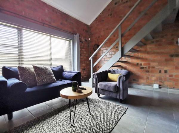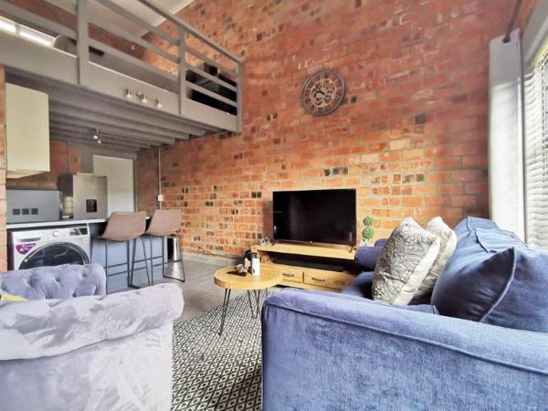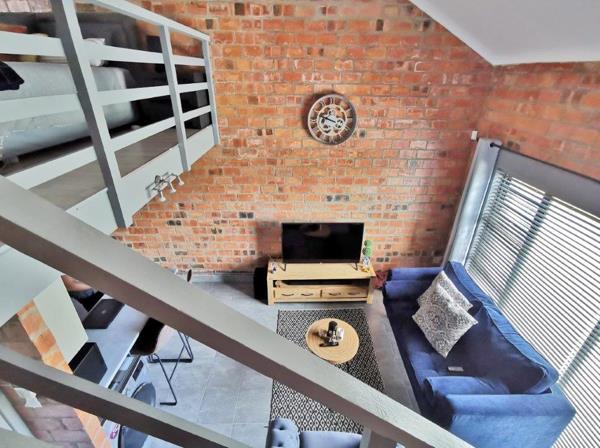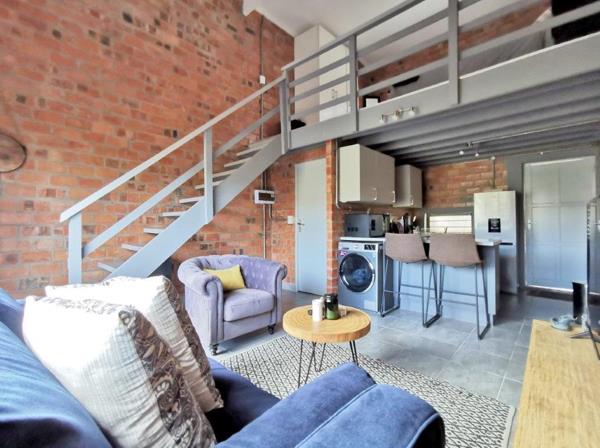 This 1st floor unit with its mezzanine bedroom is ever so neat and a pleasure to market. It has an open-plan lounge that leads to the kitchen. The kitchen has fitted cupboards and an electrical stove.
