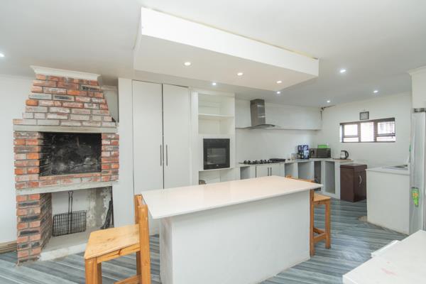 The kitchen? Already rocking a centre island and indoor fireplace.
