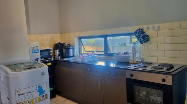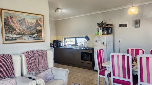 Set in its own walled garden with plenty of open parking and space to build a garage or extend, coming home means walking into a light-infused open-plan living area. The current resident has furnished it with comfortable lounge chairs, coffee table, bookshelf, TV, and a dining suite! Alongside is the kitchen, granite-topped and equipped with a fashionable hob, undercounter oven, and space for your fridge and washing machine. The bathroom boasts a handy shower/bath combination, and both bedrooms have floor-to-ceiling built-in cupboards. Special extras include window blinds, and floor tiles and aluminium-framed windows throughout to keep maintenance to a minimum.