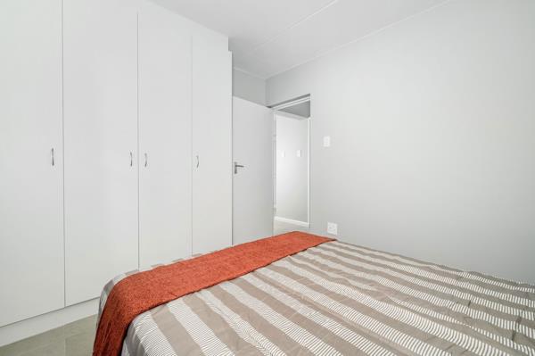 The sunny, open-plan living areas incorporate the lounge, dining room and kitchen to allow for sociable meal preparation. Both bedrooms have built-in cupboards, and there are low maintenance floor tiles throughout. For peace of mind, the complex is fully walled with remote controlled access. Additional features are low levies, and lush green communal lawns.
