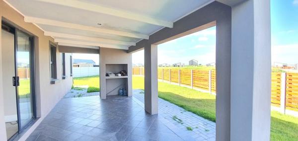 open plan to the lounge leading onto the under covered carport/patio with fitted braai