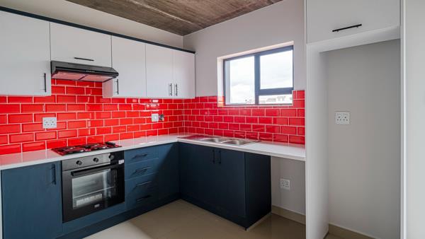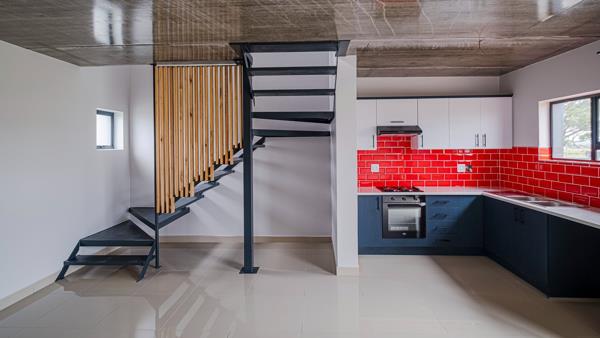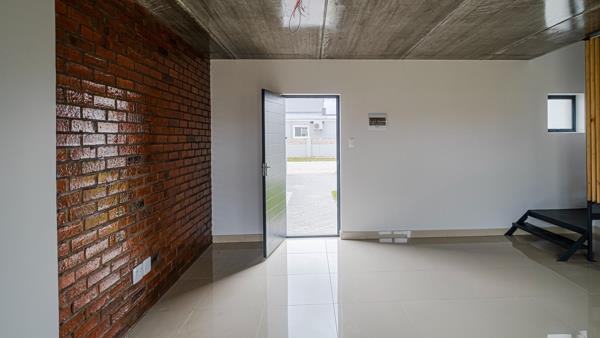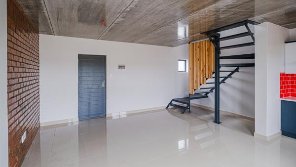The spacious ground floor boasts an open-plan kitchen with a striking screeded ceiling, adding an industrial touch that complements the raw iron and wood finish stairwell leading upstairs. The living area is generously sized to accommodate both dining and lounge spaces and opens to a small open patio and enclosed garden. There''s convenient paved parking for 2 vehicles in front of the unit.