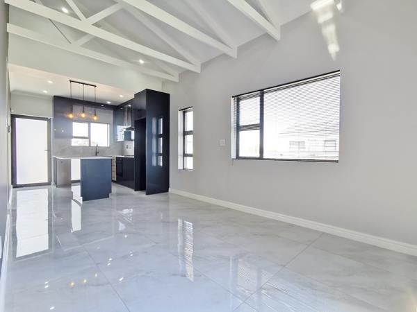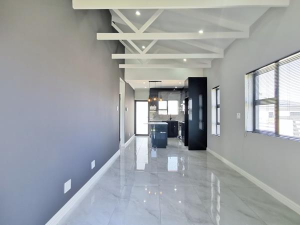 Spacious Lounge that opens with a slider to a tiled built-in braai area.