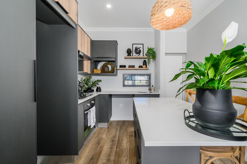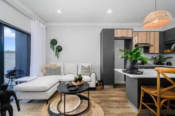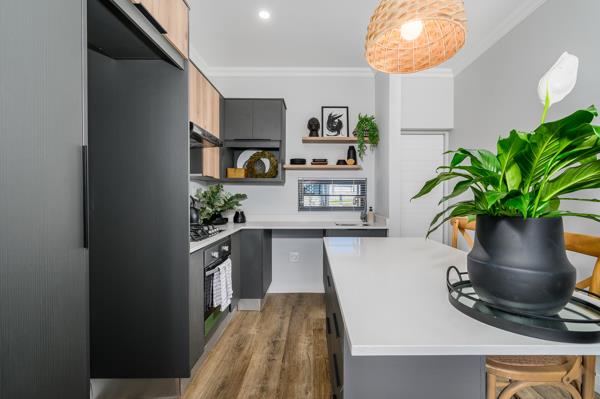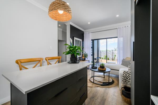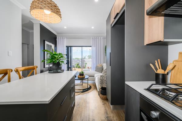 The open-plan kitchen is equipped with a gas hob and modern finishes, ideal for cooking and entertaining. Buyers also have the exciting opportunity to personalize their interior finishes, from a choice of three mood options making this space truly their own.