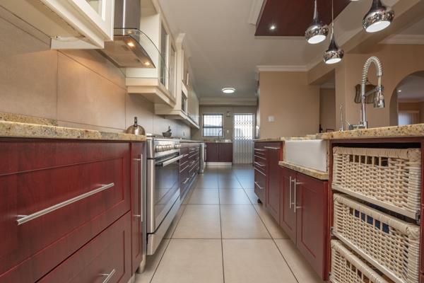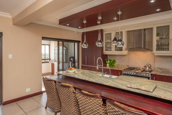 As you walk into grand entrance hall area- you have your dinning area on your left, followed by the lounge with the extra sparkle chandelier in the center of the room. This leading onto THE ultra modern large kitchen, with ample space and your very own scullery to house all your kitchen appliances. Center Island with hanging lights- Granite counter tops throughout. Leading from this you have your enclosed braai area with the spectacular views! The perfect way to end your day!