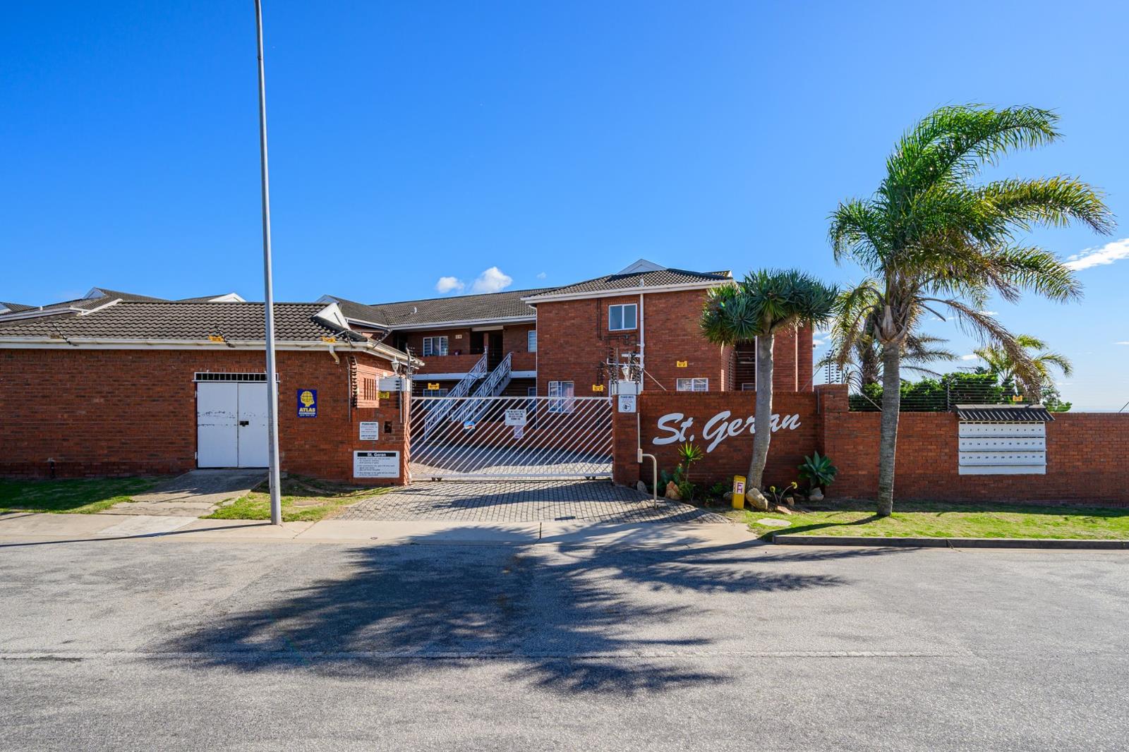 The complex, known as ''St. Geran'', features a secure gated entrance with electric fencing, providing a controlled access environment. The exterior showcases durable brick construction, a paved communal driveway, and mature palm trees that contribute to a well-maintained kerb appeal. Two dedicated parking bays are included, adding to the convenience.