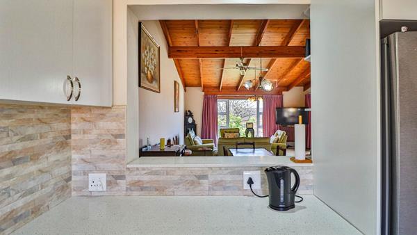 Offering an open plan layout from the fitted kitchen with quartz kitchen tops to a spacious living area with high ceilings. Undercover patio looking onto a neat, enclosed garden. 3 bedrooms all with built in cupboards and ceramic tile flooring throughout. The main bedroom has an ensuite with a shower & the main bathroom, a bath. Convenient drying yard outside the kitchen. Single garage. Pool in the complex. Pets on application.