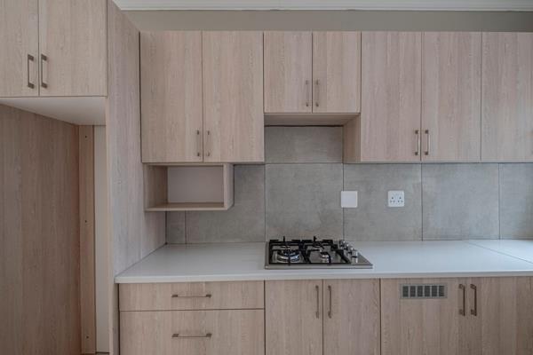 Fully equipped kitchen with gas hob and prepaid electricity meter
