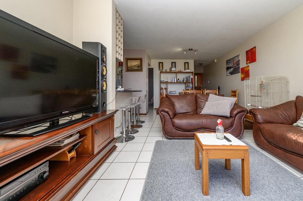 Sliding doors lead to a private patio with a built-in braai, perfect for entertaining. The small, easy-to-maintain, garden adds charm and outdoor enjoyment.