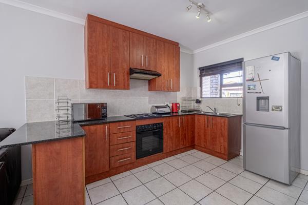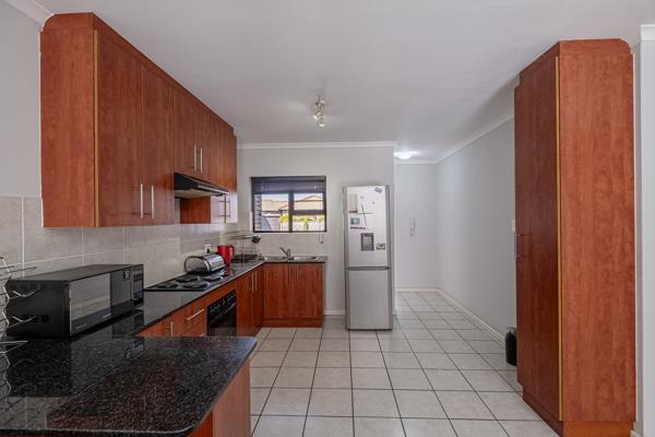 Open plan cherry wood kitchen with granite tops, seamlessly connecting to the living and dining area. Sliding doors onto an undercover patio area with built in braai & enclosed, low maintenance garden, ideal for relaxing & entertaining. 3 bedrooms all with built in cupboards. The main bedroom features an ensuite bathroom with a shower. The 2nd bathroom includes a bath with a convenient overhead shower. Interleading double garage on remote, for your peace of mind.