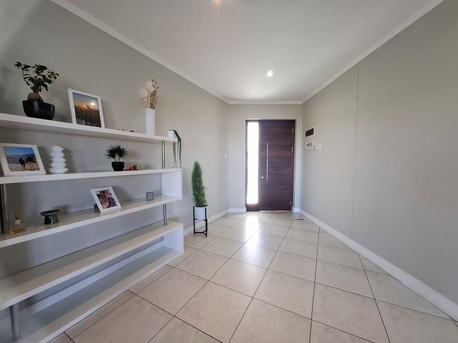 The stylish kitchen merging effortlessly into the dining area, the design allows the chef to socialise while serving sundowners and snacks or whipping up a meal. At the end of the day, the three luxurious bedrooms encourage sleep against a soothing natural backdrop the mornings come with magnificent sunrises over the trees and the bay. Discreetly positioned off the living area, the main bedroom has a sliding door to the balcony and the most beautiful, modern, full en suite bathroom with a granite topped double vanity for next-level luxury. The family bathroom in the passage is simply gorgeous, too, with a shower / bath combination, vanity, and toilet with the laundry nook close by.